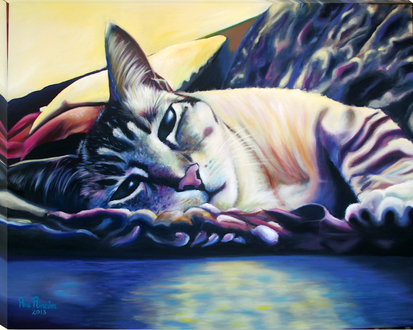 Arnold - Oil on Canvas by Ana Luisa Rincon, 2013 - Commissioned cat portrait featuring blues.